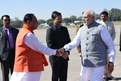 The Prime Minister, Narendra Modi being seen off by the Governor of Gujarat, O.P. Kohli and the Chief Minister of Gujarat, Vijay Rupani after the oath-taking ceremony of the newly formed Council of Ministers of the Gujarat Government, at Gandhi Nagar, Gujarat on December 26, 2017.