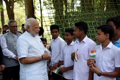 The Prime Minister, Narendra Modi walks through the exhibition of farm produce of North-East and display of relevant farm and non-farm technologies, at Assam Rifles Cant, Aizawl on December 16, 2017. The Minister of State for Development of North Eastern Region (I/C), Prime Minister’s Office, Personnel, Public Grievances & Pensions, Atomic Energy and Space, Dr. Jitendra Singh is also seen.
