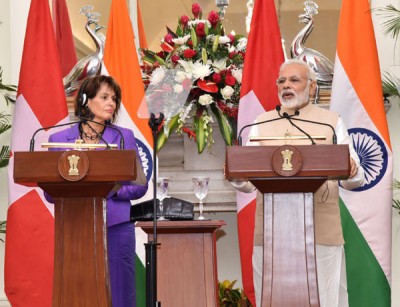 The Prime Minister,Narendra Modi and the President of Switzerland,Doris Leuthard at the Joint Press Statement, at Hyderabad House, in New Delhi on August 31, 2017