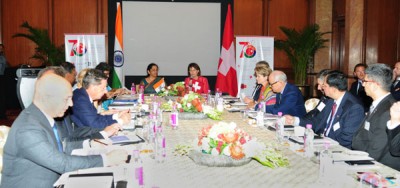 The Minister of State for Commerce & Industry (Independent Charge)Nirmala Sitharaman meeting the President of Swiss Confederation,Doris Leuthard, in New Delhi on September 01, 2017.