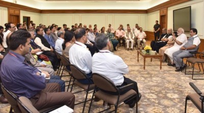 The Prime Minister,Narendra Modi interacting with a group of Additional Secretaries and Joint Secretaries serving in Government of India, in New Delhi on August 30, 2017.