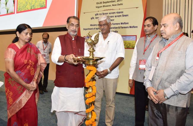 The Union Minister for Agriculture and Farmers Welfare,Radha Mohan Singh at the inauguration of the “National Conference on Agriculture for Rabi Campaign - 2017â€, in New Delhi on September 19, 2017. The Ministers of State for Agriculture and Farmers Welfare, Smt. Krishna Raj andGajendra Singh Shekhawat, the Secretary, Ministry of Agriculture and Farmers Welfare,S.K.Pattanayak and the Secretary, Department of Agricultural Research and Education (DARE) and DG, ICAR, Dr.T.Mohapatra are also seen.