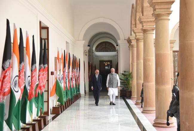 The Prime Minister, Narendra Modi with the President of Afghanistan, Dr. Mohammad Ashraf Ghani, at Hyderabad House, in New Delhi on October 24, 2017.