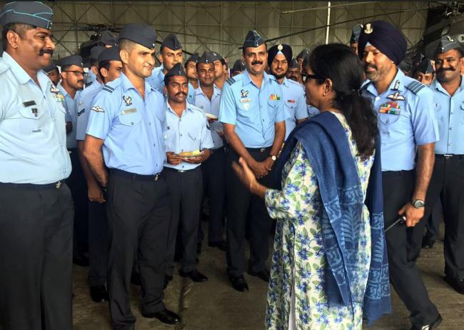 The Union Minister for Defence, Nirmala Sitharaman celebrating Diwali with the Air Force personnel, at Air Base in Car Nicobar under Andaman & Nicobar Command, on October 19, 2017.