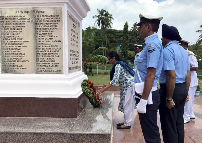 The Union Minister for Defence, Nirmala Sitharaman paying homage to the Air Force personnel & their families who lost lives during Tsunami in Car Nicobar Island on October 19, 2017.