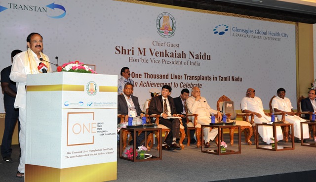 The Vice President, M. Venkaiah Naidu addressing the gathering at a function to celebrate the “1000 liver transplants in Tamil Naduâ€, in Chennai on January 16, 2018.