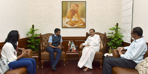 The Badminton PlayerP.VSindhu and the coach,P.Gopichand calling on the Vice President,M.Venkaiah Naidu, in New Delhi on August, 31, 2017.