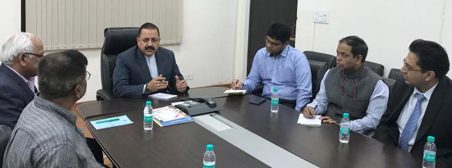 The Minister of State for Development of North Eastern Region (I/C), Prime Minister’s Office, Personnel, Public Grievances & Pensions, Atomic Energy and Space, Jitendra Singh chairing a meeting to review the status of India’s first-ever “Air Dispensary†service to be introduced in Northeast, in New Delhi on November 12, 2017.