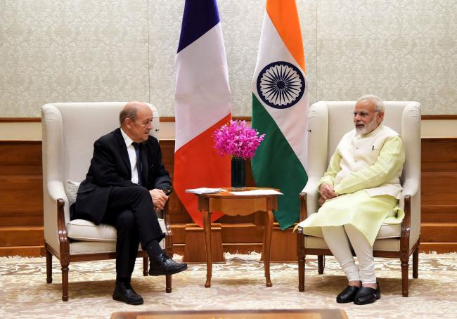 The Minister for Europe and Foreign Affairs of France, Jean-Yves Le Drian calls on the Prime Minister, Narendra Modi, in New Delhi on November 17, 2017.