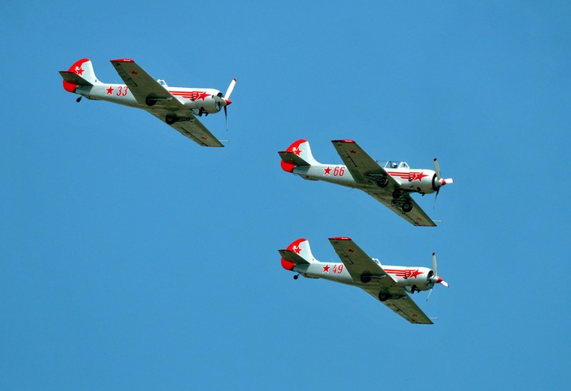BENGALURU, 18 (UNI):- UK fighter Yakovlev participating fly past during full dress rehearsal ahead of 12th Edition of Aero India 2019 at Yelahanka airbase in Bengaluru on Monday