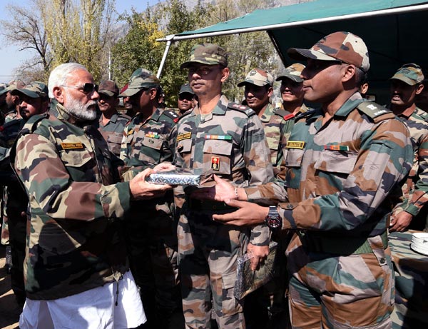 The Prime Minister, Narendra Modi celebrating the Diwali with the jawans of the Indian Army and BSF, in the Gurez Valley, near the Line of Control, in Jammu and Kashmir, on October 19, 2017.