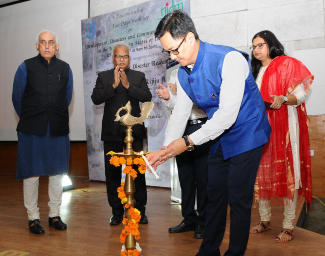 The Minister of State for Home Affairs, Kiren Rijiju lighting the lamp during the inauguration of the Special Centre for Disaster Research, at Jawaharlal Nehru University (JNU), in New Delhi on October 26, 2017.