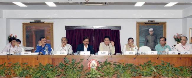 The Union Minister for Railways and Coal, Piyush Goyal addressing a press conference on recent decisions taken in Railways, in New Delhi on October 25, 2017. The Chairman, Railway Board, Ashwani Lohani and other dignitaries are also seen.