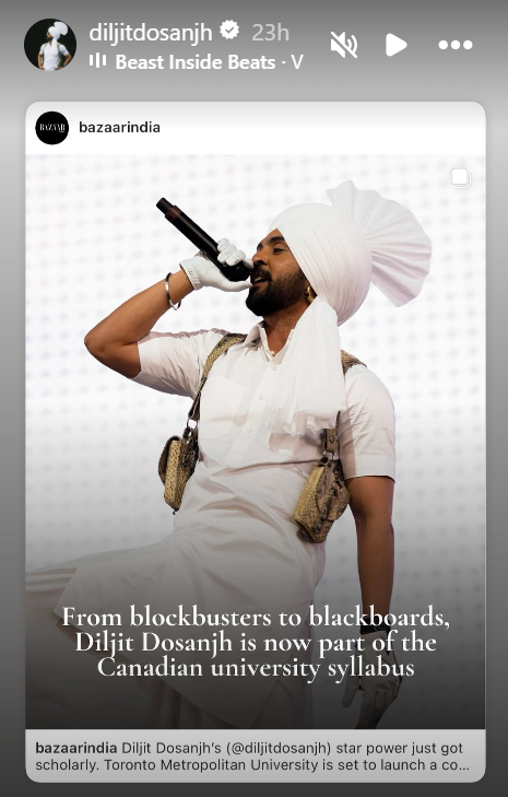 Dr Charlie Wall-Andrews, Assistant Professor at The Creative School at Toronto Metropolitan University, said in a statement as quoted by NDTV, "His rise illustrates the cultural influence and economic potential of Punjabi music on the world stage. By examining his impact, students will explore how regional sounds shape global pop culture, mobilise diasporic communities and contribute to sustainable creative economies rooted in authenticity."