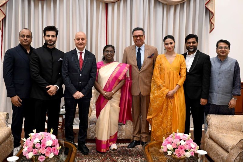 Anupam Kher and others interact with President Droupadi Murmu during 'Tanvi The Great' screening at the Rashtrapati Bhavan.