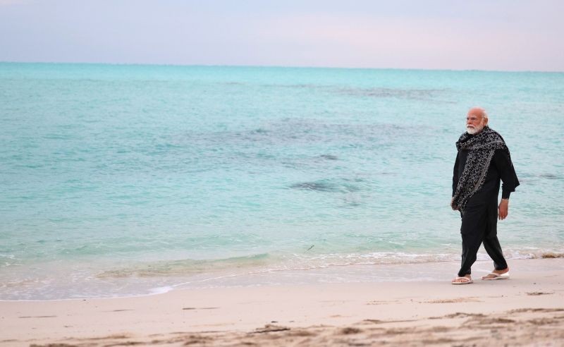 PM Modi in Lakshadweep in early 2024. Photo: Narendra Modi/X