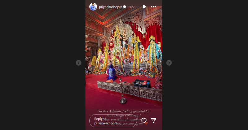 She later shared a photo in an Instagram story where the actress wrote, "On this Ashtami, feeling grateful for Maa Durga’s blessings."