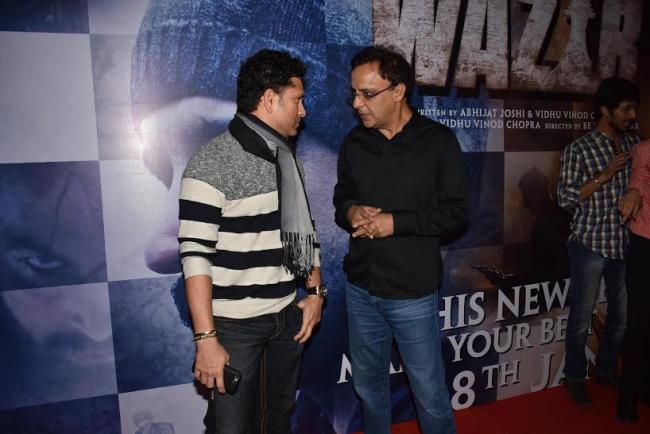 Mumbai, Jan 7 (IBNS) Producer Vidhu Vinod Chopra hosted a special screening of his film Wazir on Wednesday at a Mumbai suburban theatre, which was attended by cricketing legend Sachin Tendulkar among others.