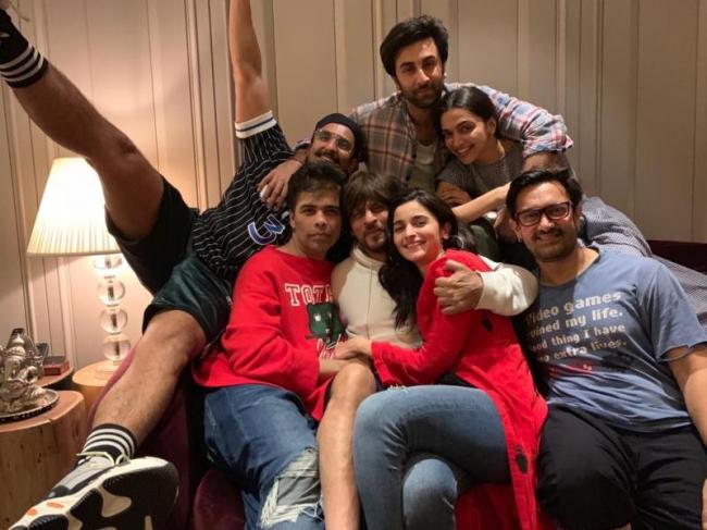 Karan took to Instagram to share an image where Bollywood biggies Shah Rukh Khan, Aamir Khan, Ranveer Singh, Deepika Padukone, Ranbir Kapoor and Alia Bhatt were seen with the Kuch Kuch Hota Hai director, reportedly at the latter's house.