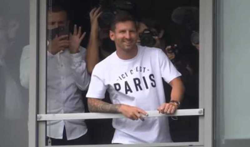 Messi, wearing a T-shirt which wrote "ici c'est Paris (this is Paris)", waved to the fans when walking out of the airport.