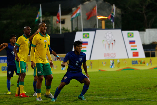 Aniket’s rasping shot after Aman Chetri played him on goal was denied by some acrobatic defending by the South African defence line as Luke Fleurs flew in to block Aniket’s shot in the 31st minute.