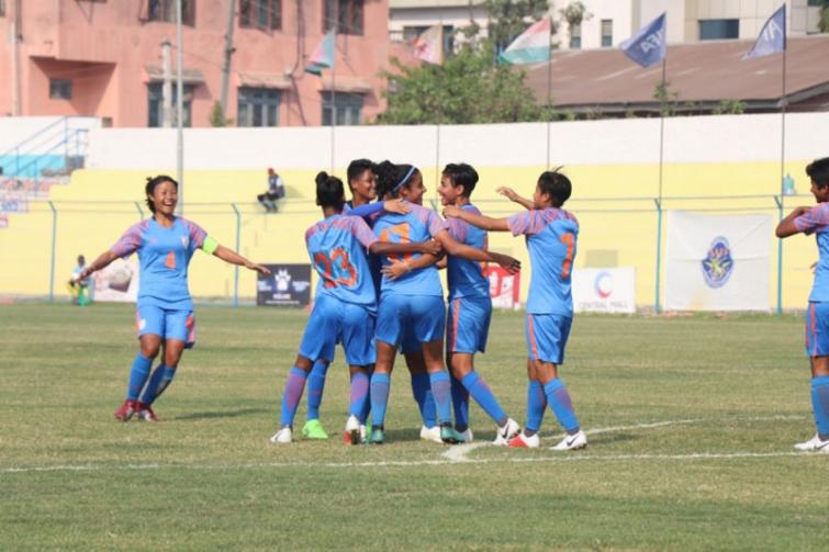 India registered their second in the 23rd minute through midfielder Indumathi, who showed excellent composure to slot the ball past the keeper after being played through on goal with a delightful reverse through-ball from Sanju.