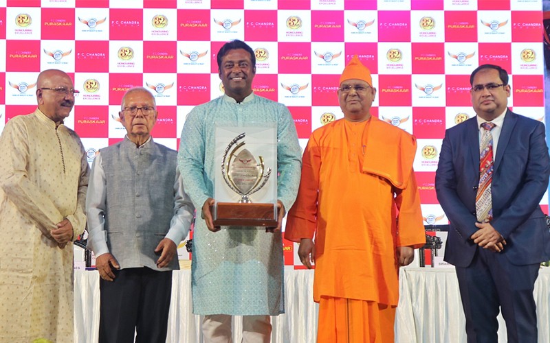 Kolkata/IBNS: Tennis legend Leander Paes was honoured with the prestigious 32nd P.C. Chandra Puraskar for his remarkable contributions at Kolkata's Science City Auditorium last Sunday.