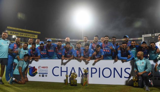 Former Indian cricketer Sachin Tendulkar wished the team and posted: " Amazing victory by #TeamIndia. Superb batting by @DineshKarthik. A great knock by @ImRo45 to set the platform. What a finish to a final!! #NidahasTrophy2018 #INDvsBAN."
