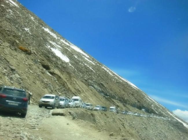 If you are a regular visitor to this region for the past 20 years, you will not belive witnessing a huge traffic jam stretching up to over three kms at Khardung La, world’s highest motorable pass at 18,340 feet.