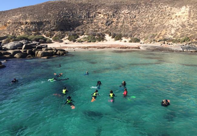 Beyond seafood, the most exhilarating experience in Port Lincoln is swimming with the sea lions. To undertake this we set off by boat from Port Lincoln Marina to the crystal clear waters of Hopkins Island where gorgeous puppies of the sea welcome us with their spectacular acrobats. It’s an awesome experience to be in the water with them.