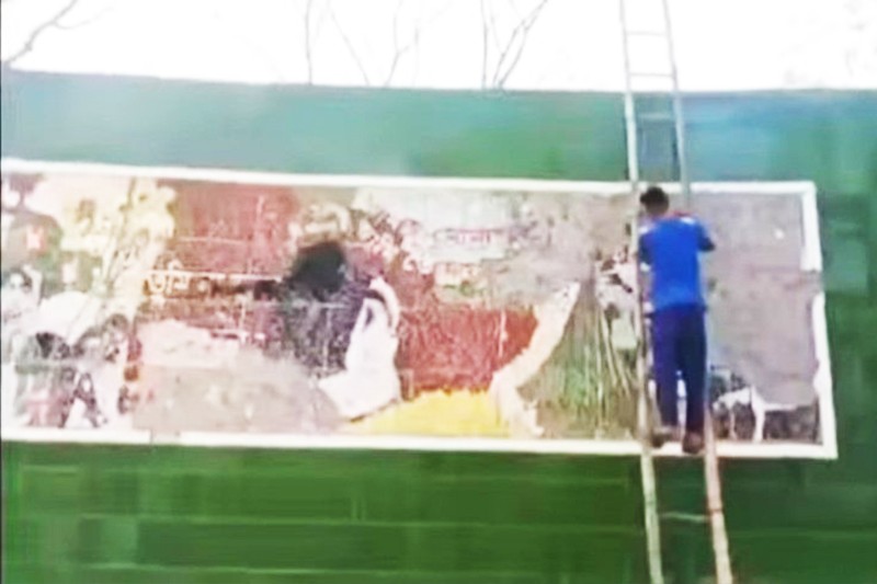 Helal Kabir, convenor of a local voluntary organisation, told bdnews24.com: "The deputy commissioner has ordered the mural’s demolition. He had previously ordered it to be covered."