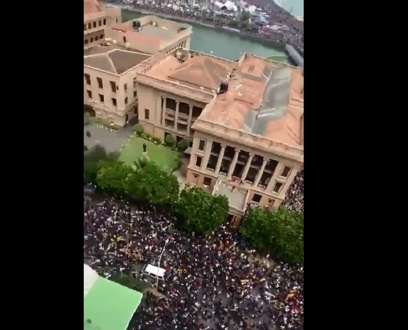 The protesters, mostly young and male, some of them waving Sri Lankan flags, broke the police barricades on Chatham Street in Colombo's Fort area and entered the President's House where Rajapaksa was not present, journalists at the site said.