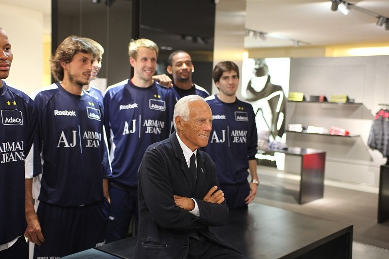 Armani with Olimpia Milano basketball players at Vogue Fashion's Night Out, September 2009. (Photo: wikipedia.org)