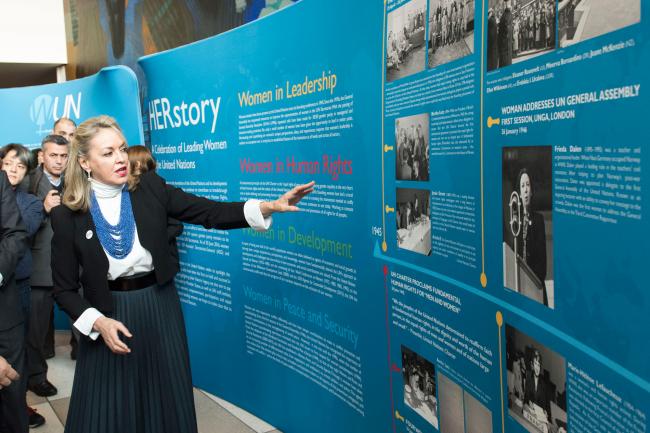 The exhibition: HERstory: A Celebration of Leading Women in the United Nations highlights a host of women’s “firsts” at the UN – such as the first woman to be appointed Deputy Secretary-General, Louise Frechette and the first woman to be appointed Special Representative of the Secretary-General (SRSG) for a peacekeeping operation, Margaret Anstee.