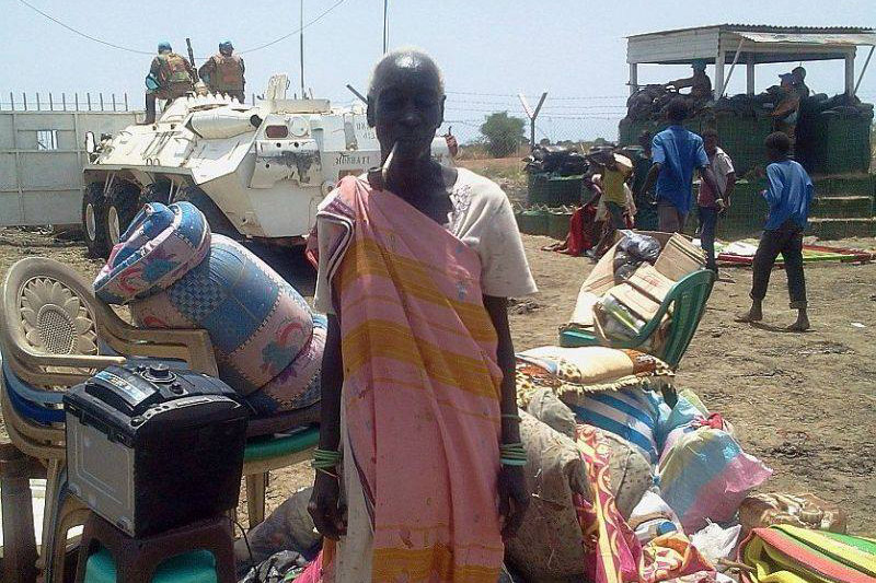 (People fleeing violence in Bentiu, the capital of Unity state, South Sudan, arriving at UNMISS base on 15 April 2014 to seek shelter. Photo: UNMISS/Mihad Abdallah)