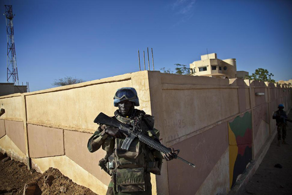 (UN peacekeepers from Togo patrol the perimeter of the Governor's building after taking over the premises in Kidal, Mali. UN Photo/Marco Dormino)