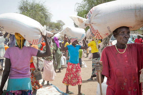Food distribution at refugee site in Upper Nile State, South Sudan. Photo: WFP/Ahnna Gudmunds