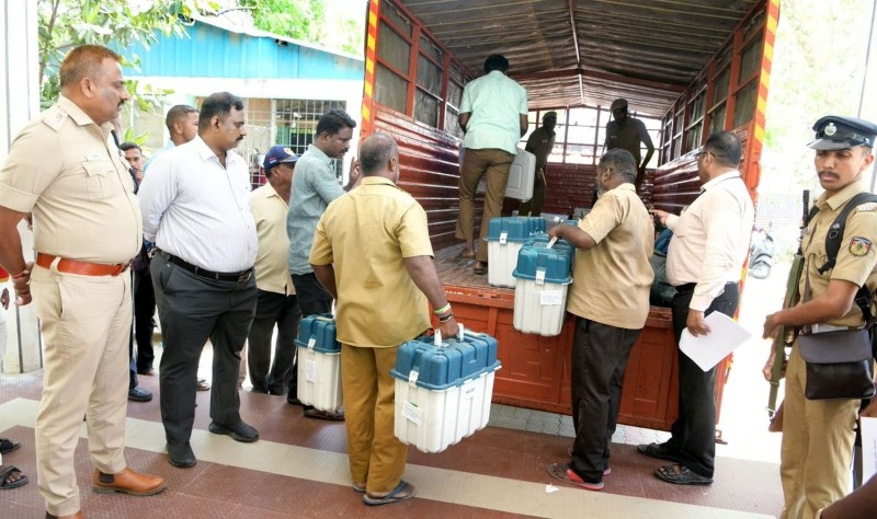 In Tamil Nadu, officials transported Electronic Voting Machines and polling materials under strict security arrangements.