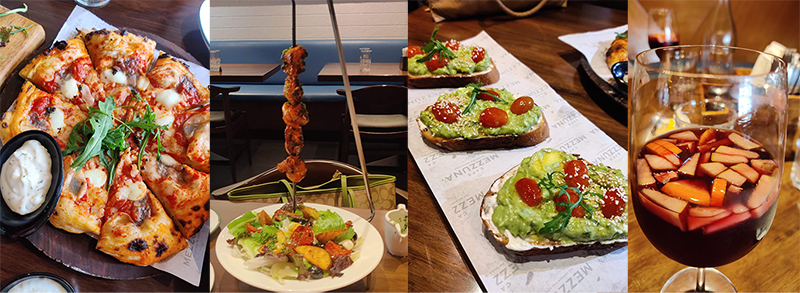 Besides the pizzas the must try items are authentic Turkish style kebabs…the Biggie Lamb Adana, this is perhaps the one-of-its-kind of kebab being served only at Café Mezzuna. For Biggie Lamb Adana, minced mutton (from the shoulder region) is seasoned only with salt and left to marinate for two nights and cooked over high heat to be served with a thin flatbread, sumac flavoured onions and dips. Then there’s the juicy and succulent Lean Chicken Koobideh served with fresh salad, roasted potatoes and a dressing drizzled over the kebabs. Both, besides being a visual delight, are truly delicious!