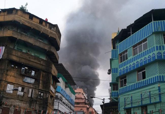 "It's been more than 12 hours since the fire has started and state fire department could not douse the blaze as they have shortage of modern equipment to fight such huge fire incidents," a local trader told IBNS.