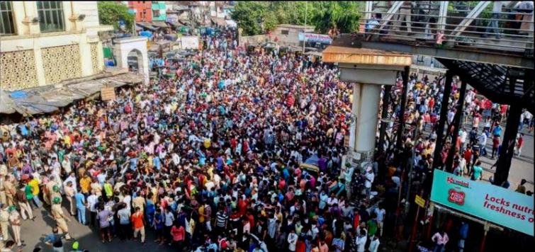 Thousands of migrant workers assembled at Bandra station in Mumbai on Tuesday to protest against the Prime Minister's extension of the lockdown which was initially called for 21 days.