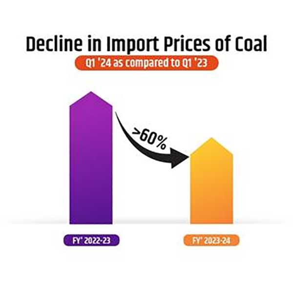 Import prices for coal have plummeted by over 60% in the Q1 of FY2023-24, compared to the Q1 of FY 2022-23.
