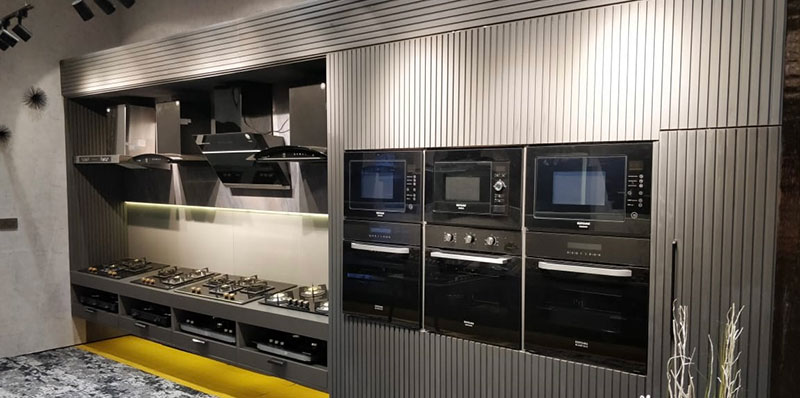 The 500 square feet outlet displays the entire range of Kutchina appliances, including Chimneys, Hobs, Built-In Ovens, Built-In Microwaves, Dishwashers, Water purifiers etc.