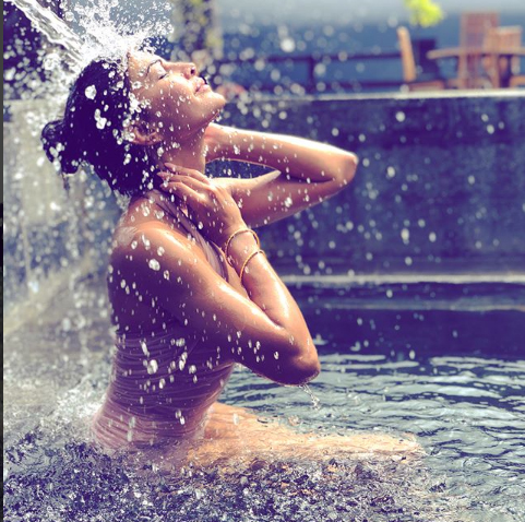 In the latest image posted in Instagram, the gorgeous actress could be seen playing with waters as she is busy taking a dip in the swimming pool.