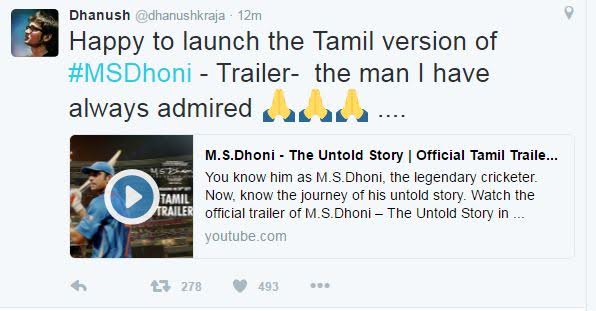 Tamil Superstar, Dhanush launches MS Dhoni trailer in Tamil