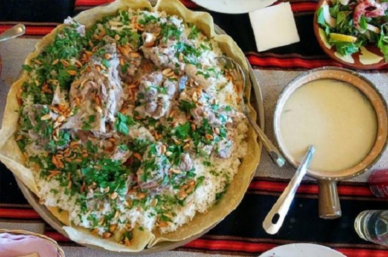 Mansaf: The traditional Jordanian dish- Mansaf, is made of lamb cooked in a sauce of fermented dried yogurt and served with rice or bulgur.