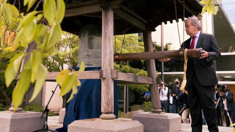 New York: The UN chief commemorated the International Day of Peace on Friday with the annual ringing of the Peace Bell ceremony followed by a minute of silence at the UN Peace Garden in New York.