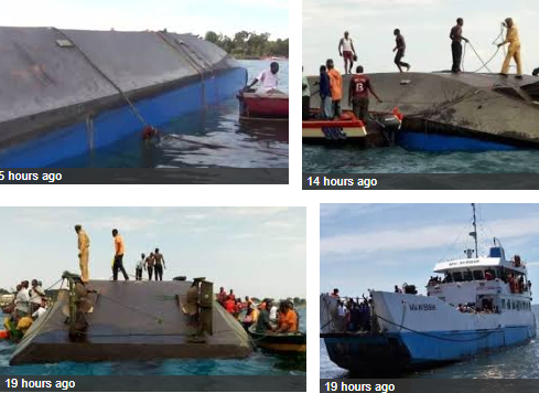 "The MV Nyerere ferry overturned near Ukara island on its way from Bugorora. It is thought the overloaded vessel tipped over when crowds on board moved to one side as it docked," BBC reported.
