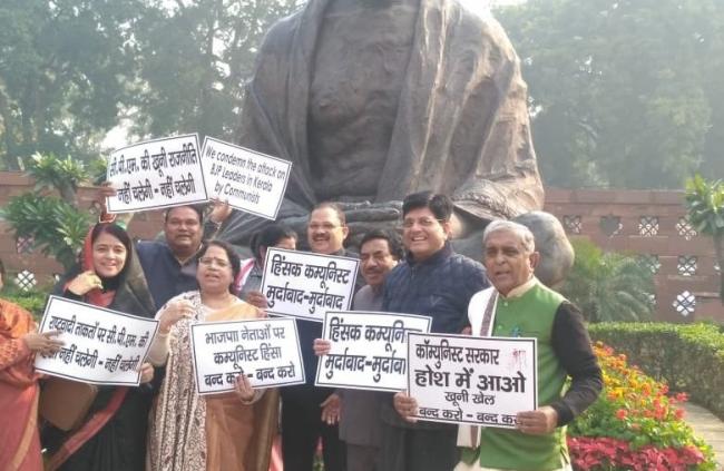 BJP MPs stand up against the tyranny of the Communists in Kerala. #SaveKeralaFromCommunists pic.twitter.com/ZOjHMpt99H