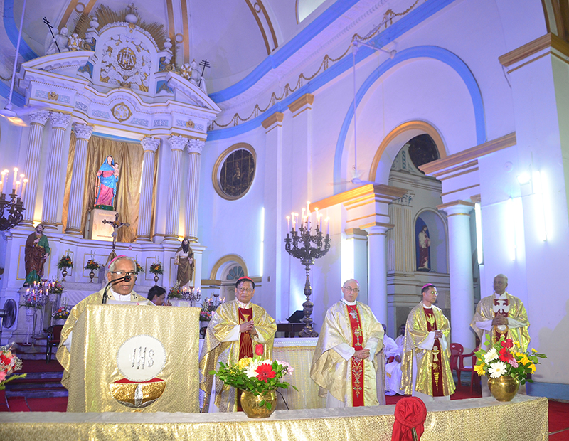 Sunday mass at The Cathedral of the Most Holy Rosary, Burrabazar, Kolkata, conducted by Apostolic Nuncio to India and Nepal, Archbishop Leopoldo Girelli, with others.
